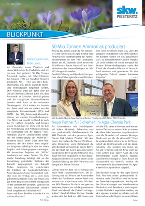 Die neue Ausgabe des Blickpunkt Piesteritz fasst relevante Ereignisse des ersten Quartals 2026 aus den verschiedensten Unternehmensbereichen der SKW Piesteritz für Sie zusammen.