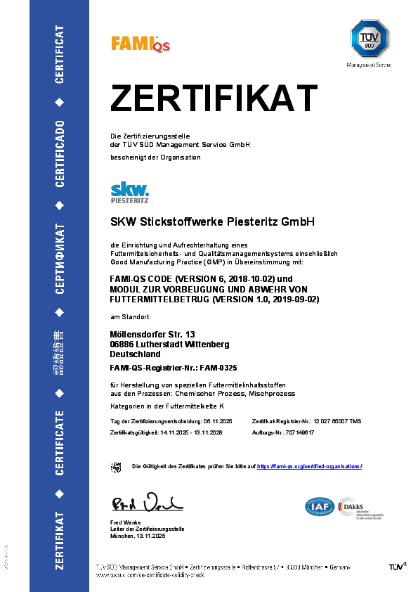 EMAS Registrierungsurkunde Piesteritz